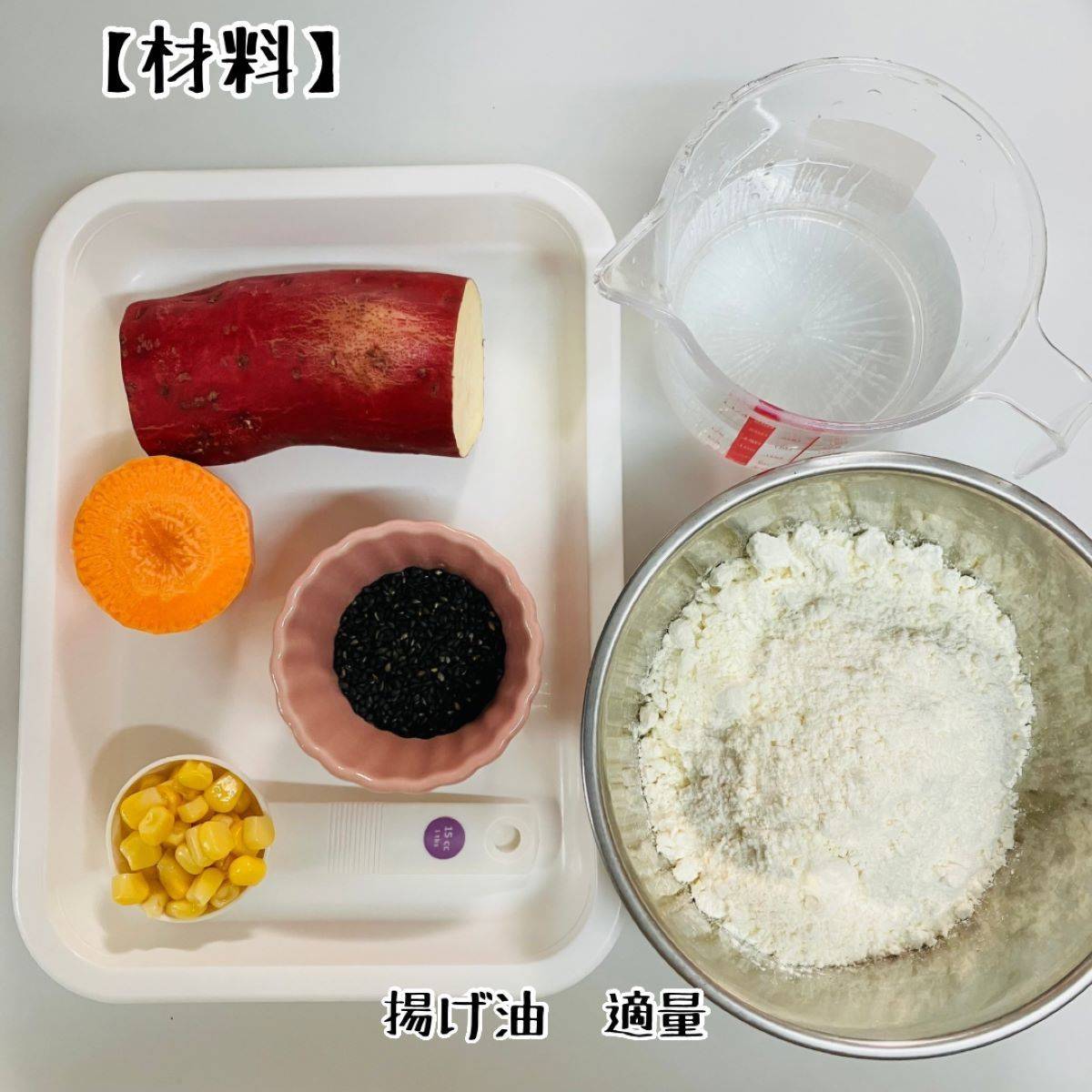 JAグループ公式の「さつまいもと人参の黒ゴマかき揚げ」のレシピ