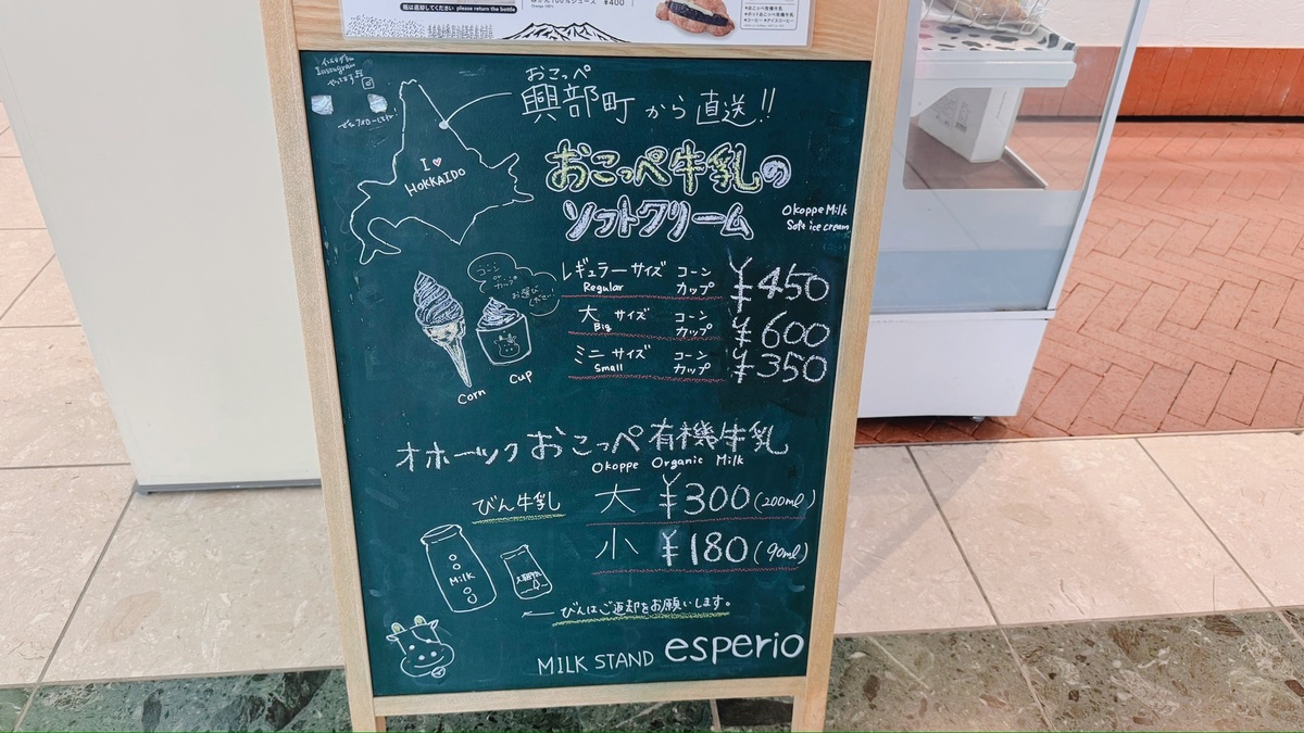 ドライブ中暑くて辛い時、空港の公園に行く時などついつい立ち寄りがちな、旭川空港にあるミルクスタンド エスペリオ。