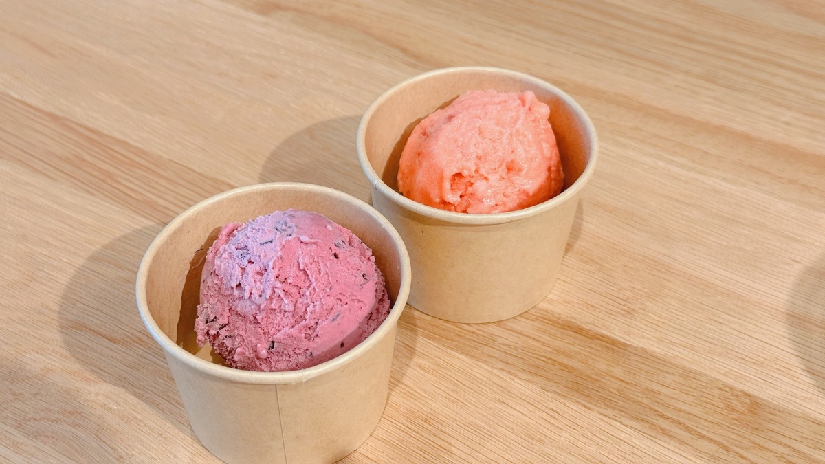 手前の紫のアイスはカシスフランボワーズ。