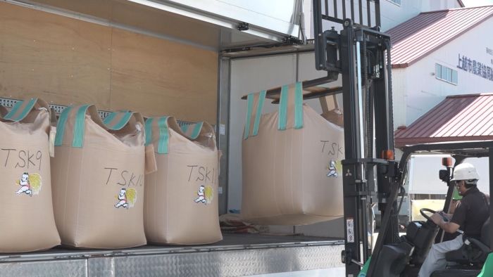 検査を終えたコメは、さっそくトラックに積まれ、関東に向けて出荷されました。来月1日から群馬や埼玉など、首都圏のスーパーの店頭に並ぶ見込みです。