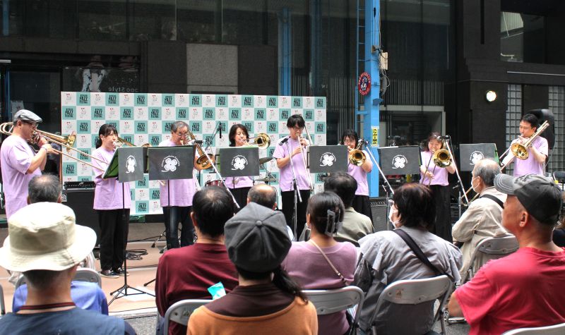 学校が異なる小学生から大学生までの30余人で編成したバンドで、デューク・エリントン楽団の演奏で有名な「A列車で行こう」や、ジャズ風に編曲した「アンパンマンのマーチ」などを演奏。小学4年生のボーカルによる「明るい表通りで」では、手拍子や大きな拍手が贈られた。