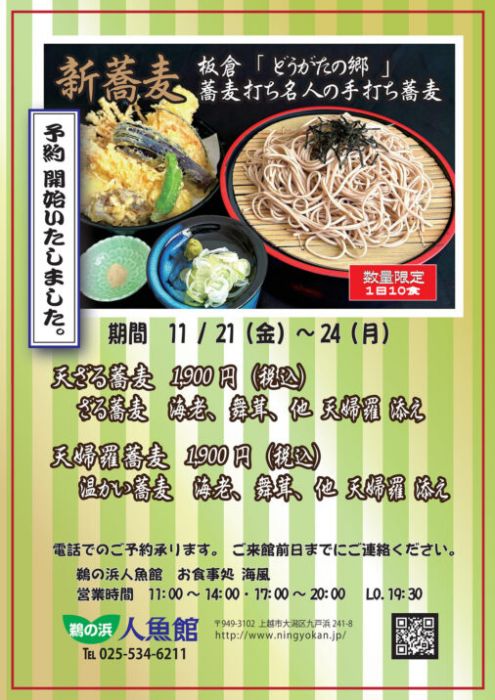 鵜の浜人魚館「秋の新蕎麦まつり」