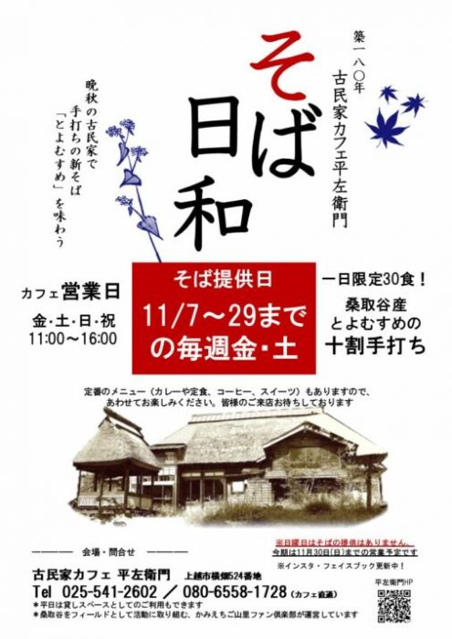 ■会場:古民家カフェ平左衛門(上越市横畑524)