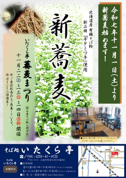 ■問い合わせ:tel:0255-81-4720(そば処 いたくら亭)
