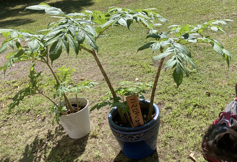 キャンプ場は、群馬の町を見下ろせる開けた山の中腹にあります。ドライブ中に見慣れない植物の畑が広がっていたのですが、キャンプ場にあった蒟蒻の木を見て、初めてあの畑が蒟蒻畑だったと知りました。