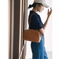 実際に持ってみると、明るい色のバッグなのでコーデが華やぎます。上品なデザインですが、Tシャツやデニムといったカジュアルコーデにも合わせやすいように思います。