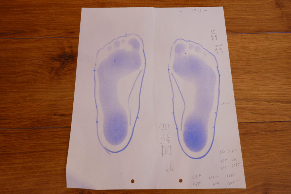 スタンプのように見えますが、足は汚れず、土踏まずのアーチや重心のかかり方まで一目でわかる優れものです。