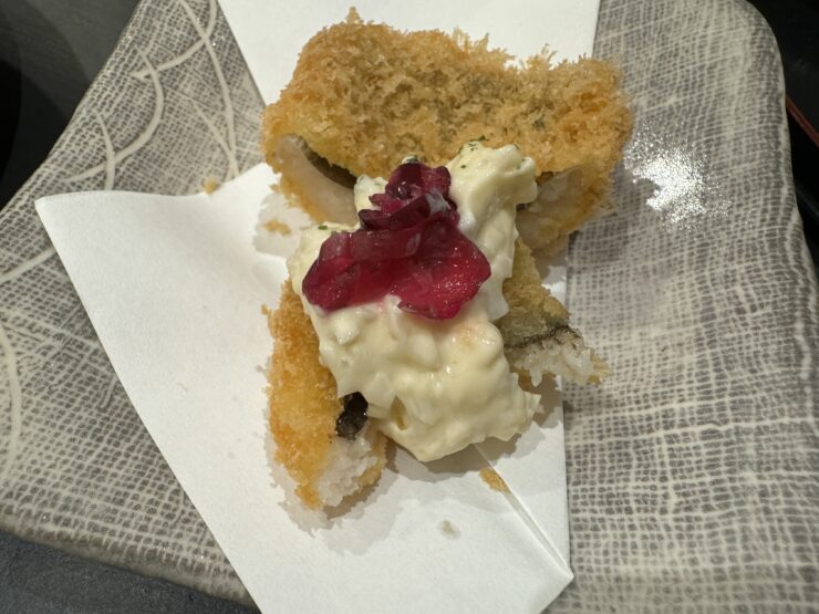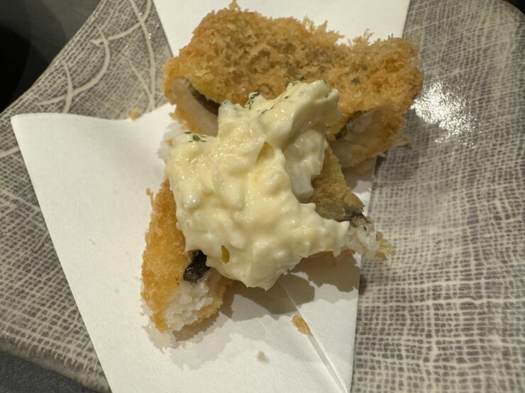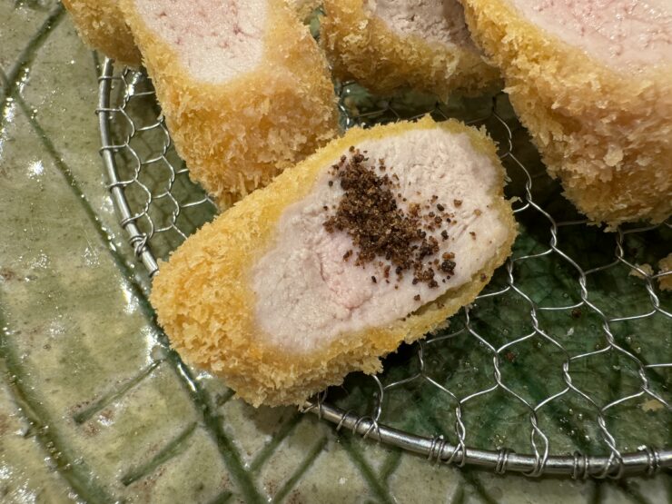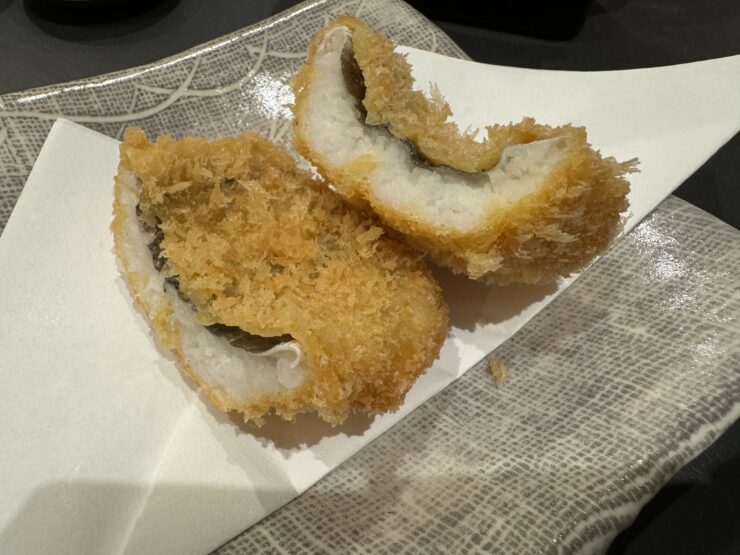 そして、季節の魚介(この時はハモ)も非常に美味。どの魚介も厳選された非常に高品質なものを使っていることが、一口味わえばすぐにわかる、より具体的に表現するのであれば、刺身でもイケる美味しい素材を、最高の技術でカツにしている、そんな魚介のカツも素晴らしいのだから、欠点がないカツ屋といっても過言ではない。