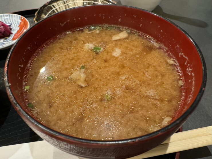 具がゴロゴロと入った、少しコクとキレのある味噌を使っているであろう豚汁、