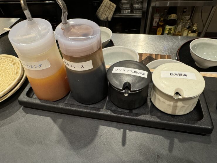 上品な旨みは、卓上のクリスマス島の塩や、岐阜県岐阜市が誇る美味しい「たまりや 山川醸造株式会社」の粉末醤油を使っても非常に美味しく味わえる。