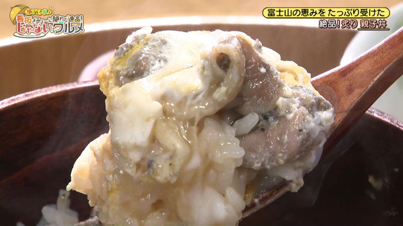 富士の恵みを受けた卵と宮崎県産の地鶏のコラボ丼『炙り親子丼』です。
