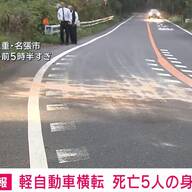 名張署によると、現場を通りかかった人から「車両が横転し、人が3人出血して路上で倒れていた」などと0時13分に通報があった。