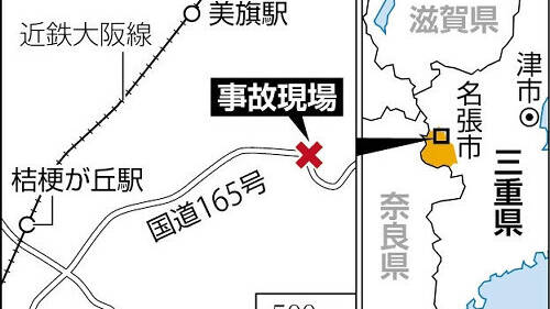 10月3日午前0時10分ごろ、三重県名張市上小波田の国道165号で軽乗用車が横転する単独事故が発生。乗っていた男女6人は市内や津市の病院に搬送された。重体者が多数出ており、心肺停止状態の人もいるという。