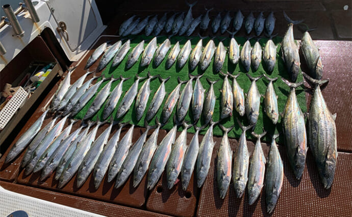 私は2ケタ釣果で、船中の合計も60匹オーバーとなった。この釣行前の7日には、三重県の楠沖でサゴシ船中70匹オーバー。私はホンガツオもキャッチすることができた。