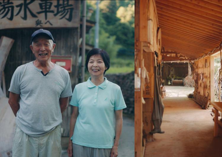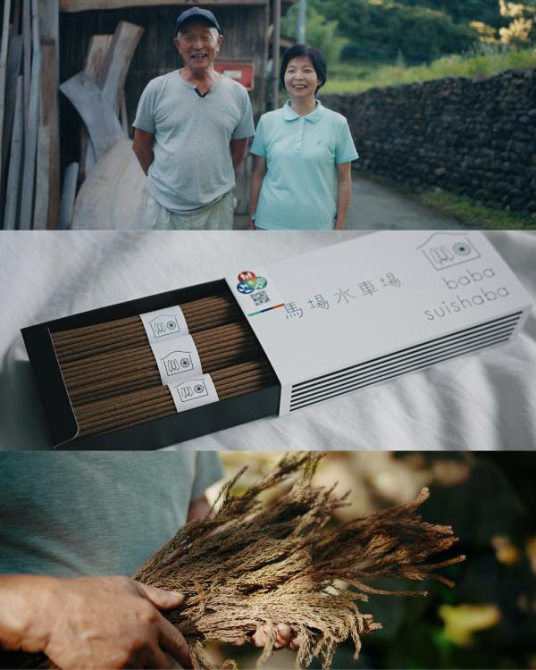 福岡県八女市黒木町の山あいに、ひときわ大きな音を立てる水車があります。ここは天然素材の線香をつくる、全国でも数少ない工房の一つ「馬場水車場」。この地で営みを続けてきたのは、馬場 猛(たけし)さん・千恵子(ちえこ)さん夫妻。香料・着色料・添加物・防腐剤を一切使用せず、八女の山から集めた杉やタブの葉を、水車の力で粉に挽き、棒状に成形。その後、約48時間かけて乾燥させます。これらの工程は、すべて手作業で行われています。