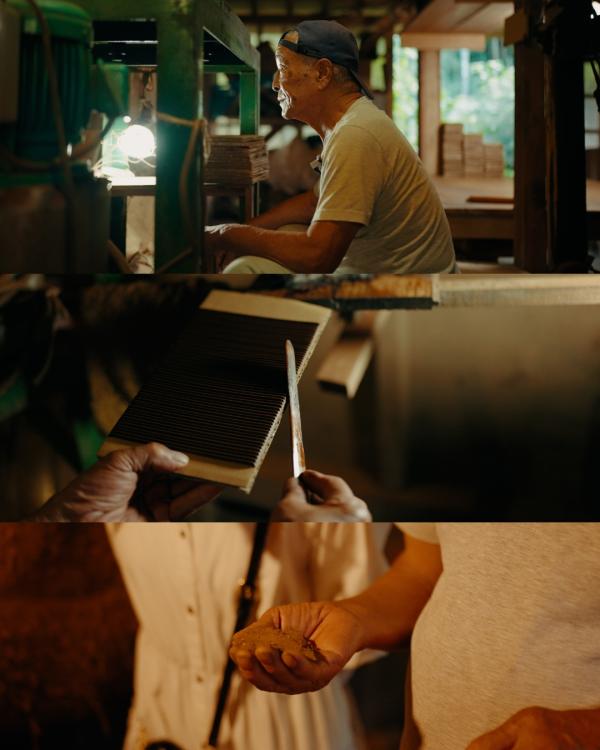 粉づくり一筋50年以上。猛さんは父の跡を継ぎ、原料としての粉を長年製造・出荷してきました。しかしある時、杉の線香が市場から消えたことをきっかけに、お客さんから「もう一度この香りを嗅ぎたい」という言葉が多く寄せられるように。60歳を迎えた頃、線香作りを決意。八女の線香メーカーを弟子入りを願い出るも、全て断られたため独学で挑戦。「水と植物の油分が喧嘩して、なかなかうまく固まらなくて。2年かかってできたのが今の線香」と振り返ります。その姿に心を動かされた商売人達が”馬場水車場を応援する会”を立ち上げ、水車を八女市の観光資源として、協力して線香作りの継続を支えてきました。