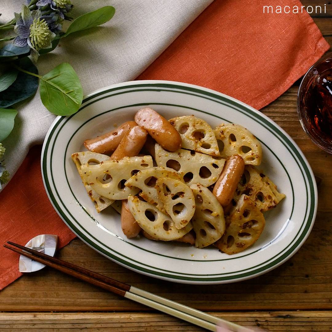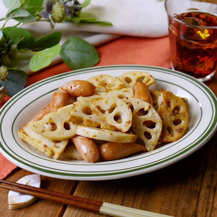 れんこんとウインナーのマスタード炒め