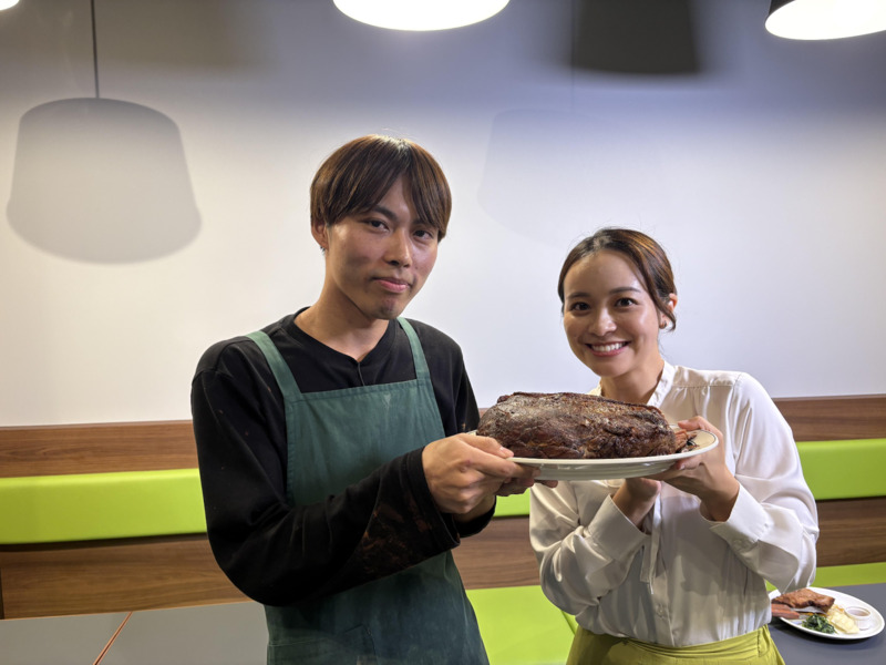 このお店のお肉は、真空低温調理で時間をかけて火入れしているので旨味が凝縮され、しっとりとろけるような柔らかさになるんだそう。提供直前に直火で一気に焼き上げているので、香ばしい香りも広がります。