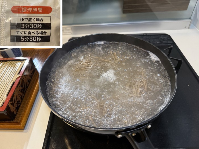 ちなみに製造者・藤原製麺は、プライベートブランドの蕎麦や、他にはない独特な蕎麦を出してきたトリッキーかつテクニカルなメーカー。その中でも特に印象的なのは、ゆで時間「2分」の『早ゆでそば』だろうか。