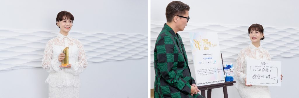 受賞理由には、69歳の今も映画やCMで第一線で活躍し続けている点。若々しいファッションから上品なドレスまで自在に着こなし、人生を愉しむ姿は年齢に関係なく「新しい若さ」を体現しており、第1回目の受賞にふさわしい存在として評価された。受賞コメントでは「このようなとても嬉しい賞をいただけて、これからもますます頑張りたい、頑張らなきゃと思えることができました」と語り、年齢を理由に立ち止まらない意思を示した。トークショー(収録映像)では「心の余裕と感受性の豊かさ」を新しい若さと捉え、歳を重ねても好奇心を持って挑戦し続けることが若さに繋がるとした。