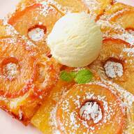 クランブルのザクザク食感と、バターで炒めたりんごのとろける甘さが幸せなデザート。焼きたての香りに包まれながら、大きなスプーンでたっぷりすくって召し上がれ。