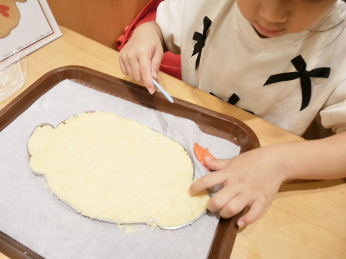 さっそくクッキー作りの準備からスタート。まずはしっかり手を洗い、清潔な状態で体験開始です。そのあと、スタッフさんから材料と道具を受け取り、好きなクッキーの形を選びます。