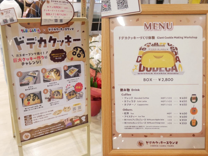 完成した“ドデカクッキー”は持ち帰ることも可能ですが、カフェスペースで食べていくのもおすすめ♪(※ワンドリンク制)。