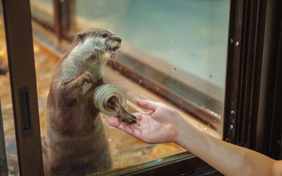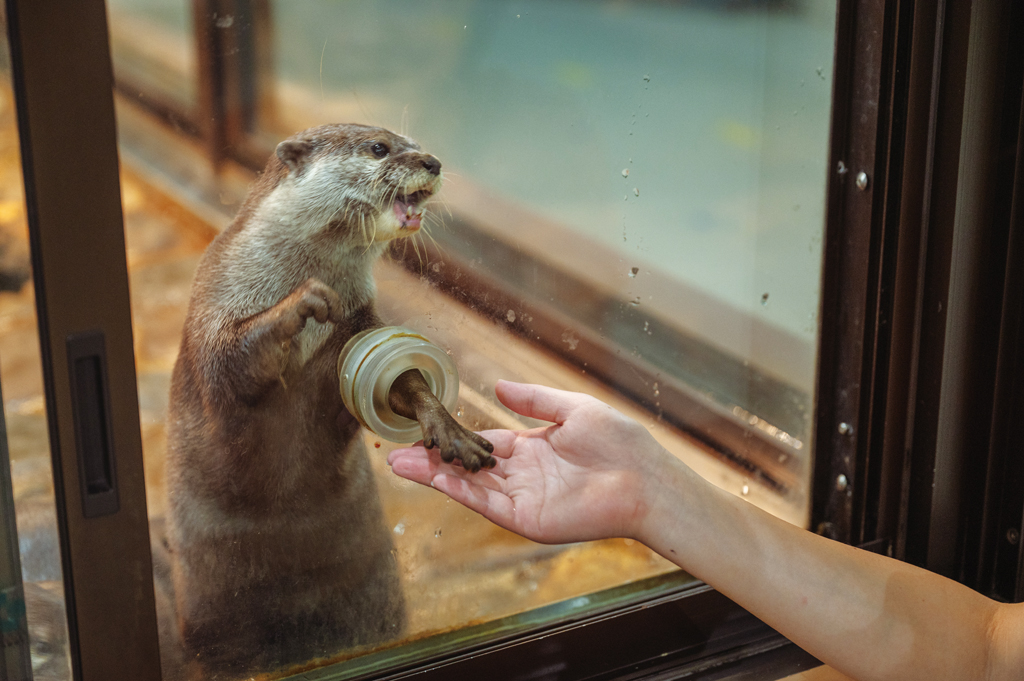 カワウソのおやつタイムは、体験料 200円で20人限定。