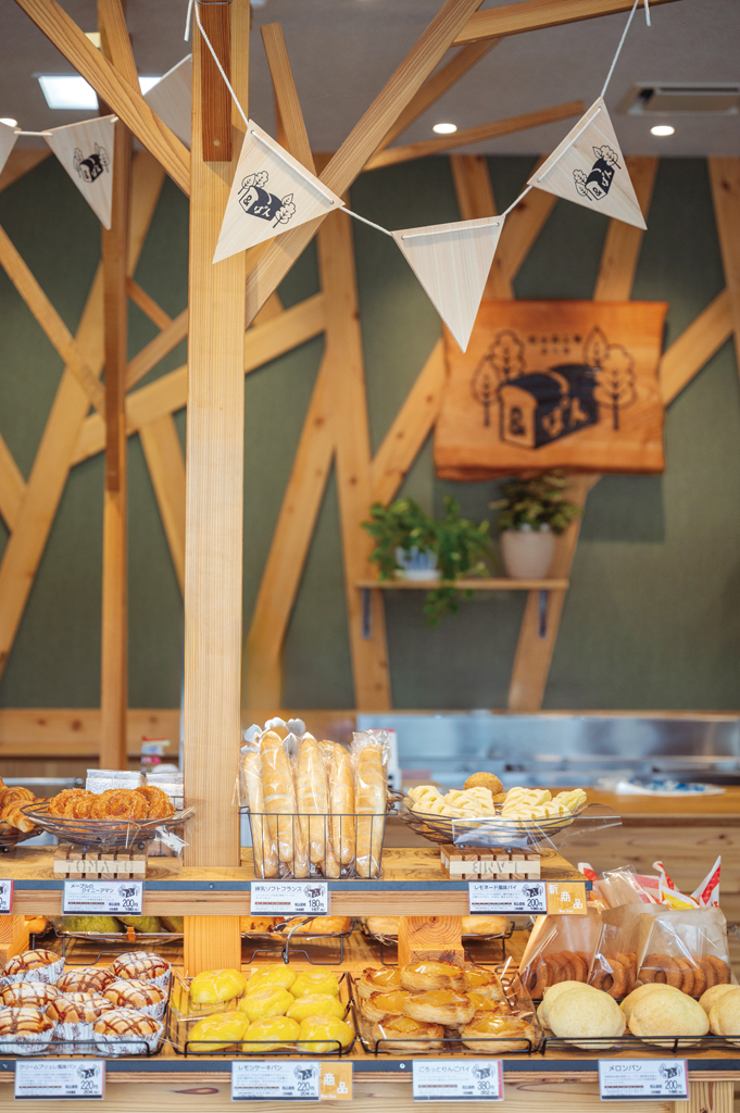 併設のパン工房「&ぱん」には、40種類以上のパンが並ぶ。個室の授乳室やイートインスペースも充実。