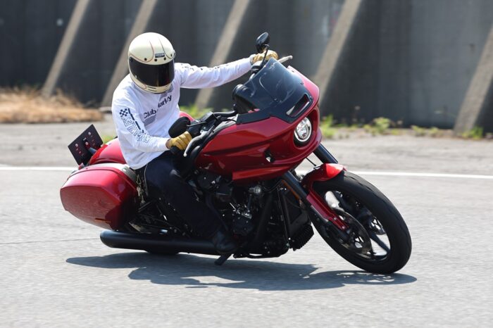 手足を前方に大きく投げ出すポジション、そして大径フロントホイールと極太リアタイヤで操縦性はかなりクセ強め。コーナリングも粘るようなフィーリングで決して曲がりやすくはない。そのうえ、スロットルを捻ればグオォッ!!と乗り手が驚くほどワイルドに加速する。言い換えればガチなドラッグレーサーを公道で走らせるような感覚。こいつはヤバい……でもそれが楽しいのだ。