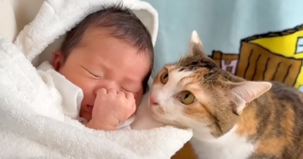 赤ちゃんがお家にやって来たら……猫が見せた『変化の様子』に感動が止まらないと179万再生「愛おしくて泣ける」「可愛すぎて涙」