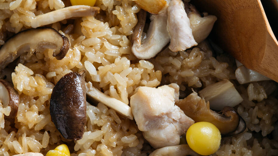 【1】鶏もも肉はひと口大にカットしてポリ袋に入れ、塩、こしょうとAをもみ込む。にんじんは細切り、まいたけはほぐしておく。