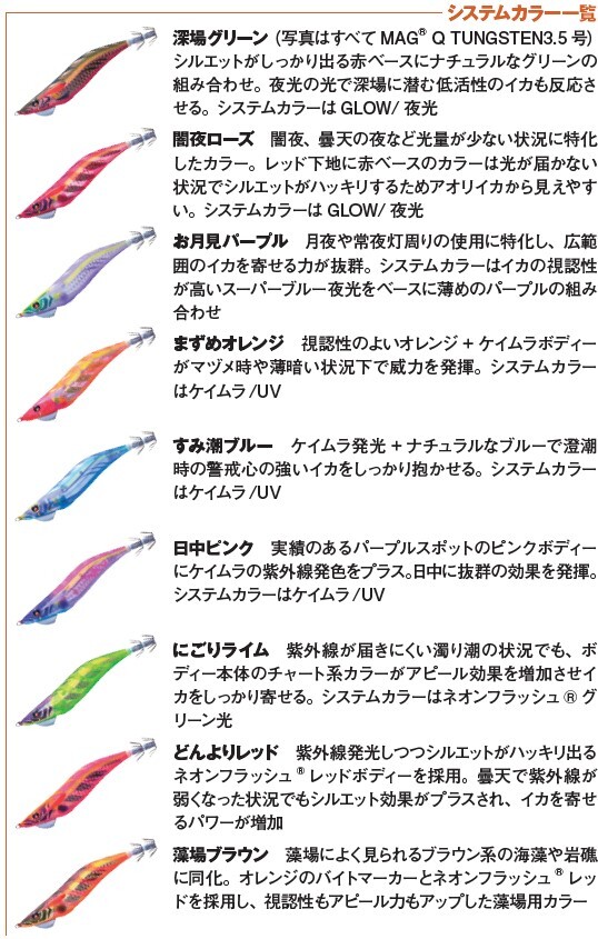 エギのひとつひとつに個性があり特徴があり、どのエギが一番釣れるということではなく、季節やシチュエーション、アングラーの技量によっても、マッチするエギは違ってきます。