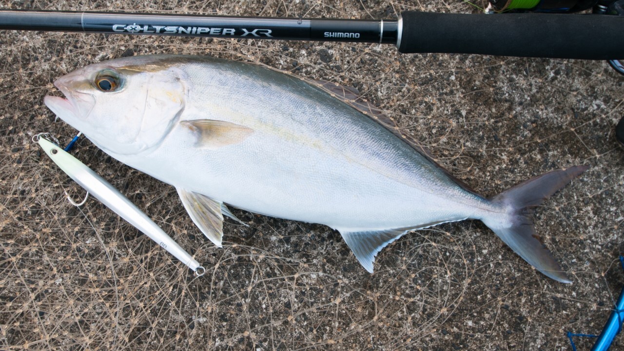 アオリイカの天敵になるフィッシュイーターはたくさんいるが、秋に多いのがシイラとカンパチ。これが元気よく回遊している間はアオリイカはなかなか捕食行動に出ない