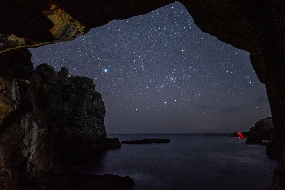 洞窟に星空が映し出されている様子