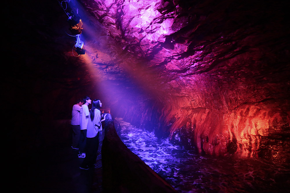 光と音に包まれた洞窟の中は、なんだか神秘的。唯一無二の体験をぜひ!