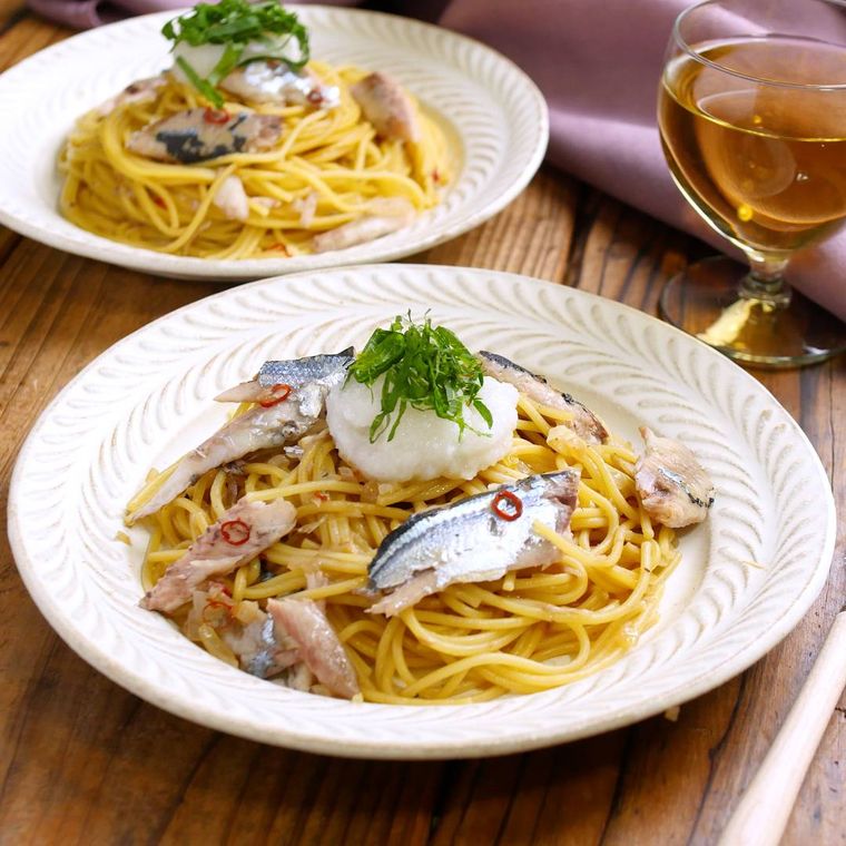 8: 器に盛り、大根おろし、大葉をトッピングして完成です。