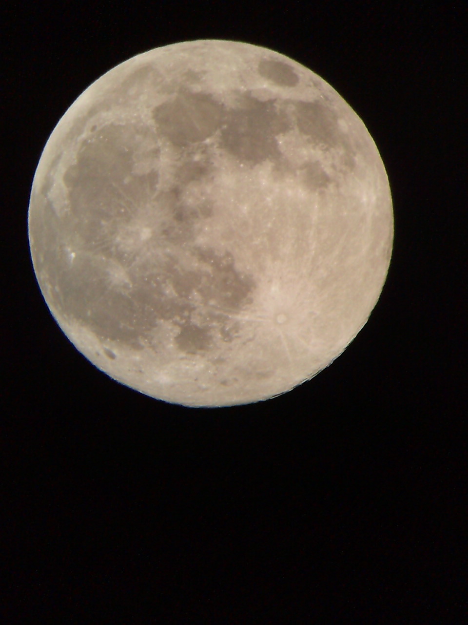 満月のころはクレーターの凸凹が見えないと言いましたが、実はひとつだけ目立つクレーターがあります。「ティコクレーター」という名前で、ミカンのヘタみたいなクレーターです。