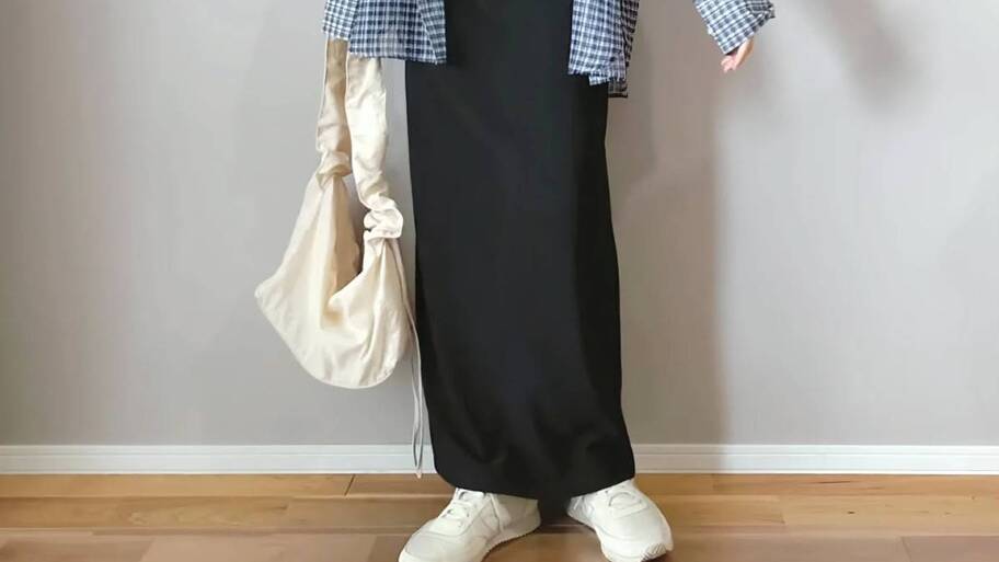 ロゴTシャツとロングスカートの組み合わせは、定番で失敗知らず♪