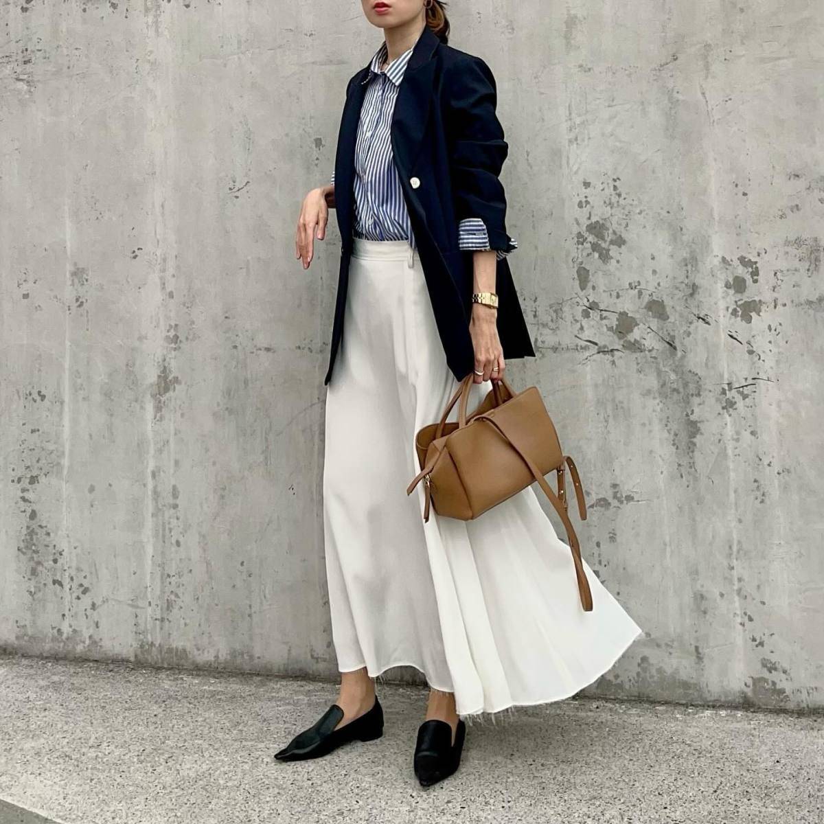 ボトムスに白スカートを合わせれば、センス抜群なうえに気候によく似合う服装の完成です♡