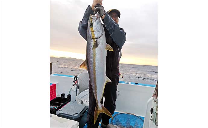 10月18日、福岡県宗像市・大島の明石丸が玄界灘の落とし込み釣りに出船すると、この日はヒラマサ4~6kg、ヤズ3~4kg、ネリゴ1kg級、カンパチ2~3kg、コシナガマグロ3~4kg、ハマイサキなど交え釣る人は大型クーラーを満タンに埋めた。