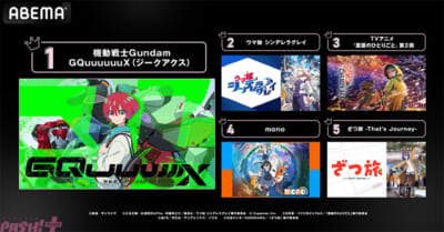 コメント数ランキング:『機動戦士Gundam GQuuuuuuX(ジークアクス)』が1位!
