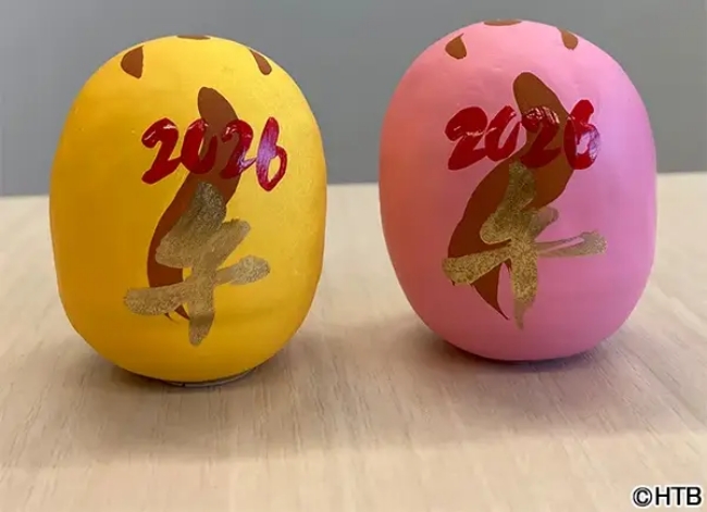 2025年12月5日(金)、『HTB』グッズ取扱店やオンラインショップにて、『onちゃん干支ミニだるま「午」 黄』と『onちゃん干支ミニだるま「午」 桃』が発売されます。