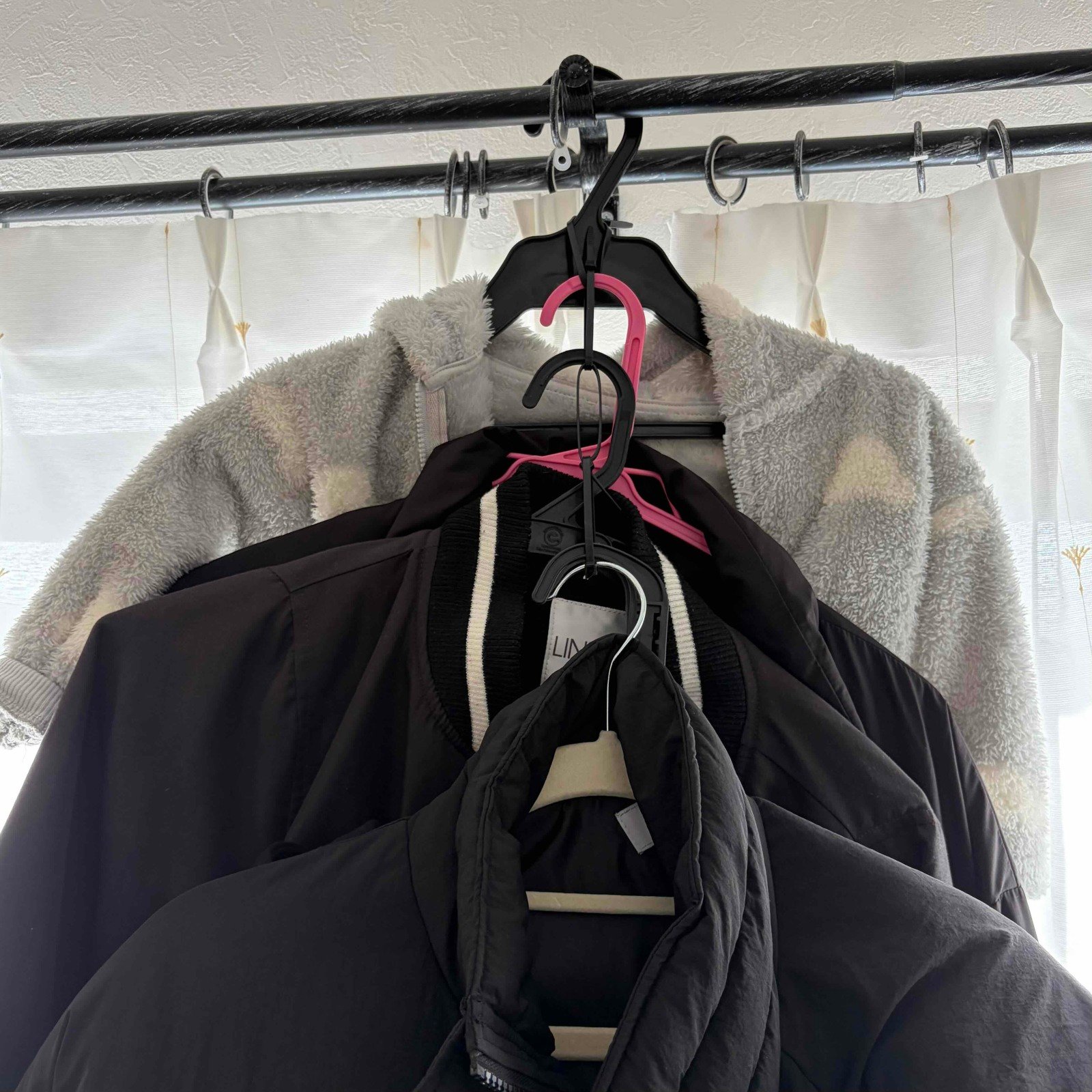 とても簡単に、収納スペースが節約できる便利なアイテムができました! クローゼットに余裕ができ、洋服をすっきり片付けることができますね。