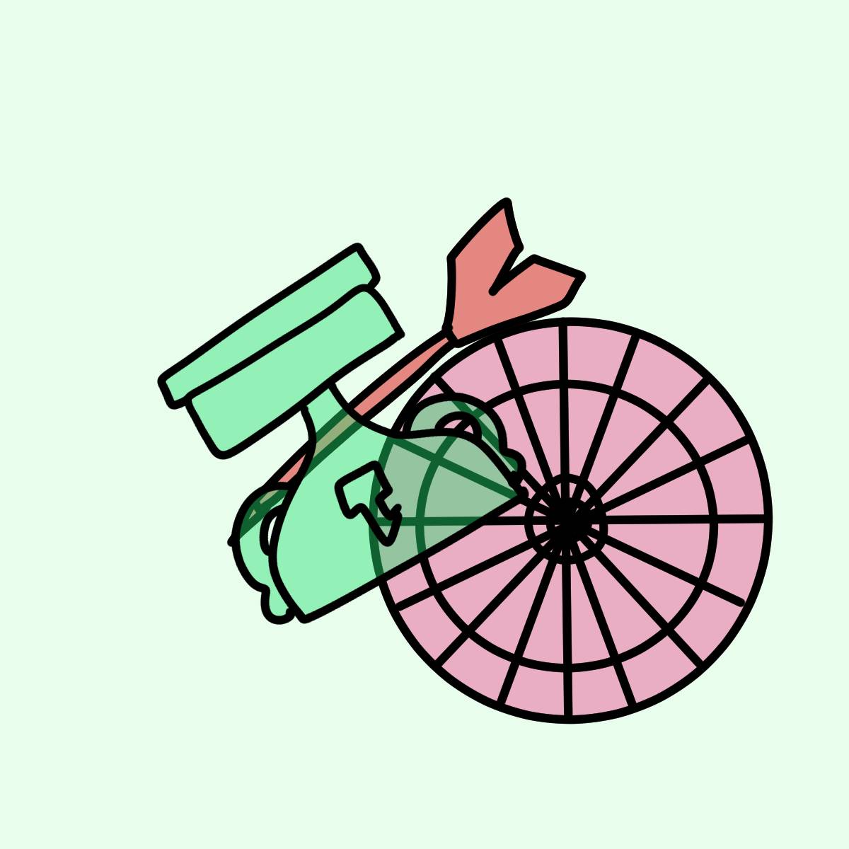 ダーツの矢は、ダーツボードに投げる道具。的に向かって投げることから、目的意識や目標設定を意味するモチーフとして考えます。
