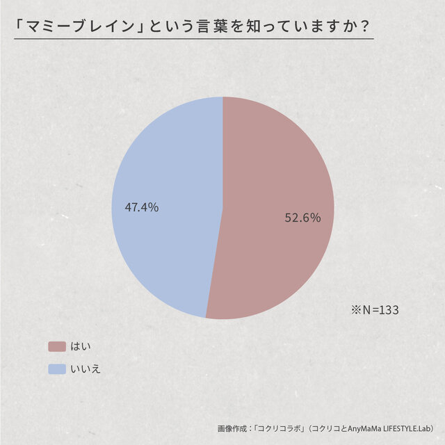 出産経験者であるママ133人に「マミーブレイン」という言葉を知っているかを聞いたところ、「はい」と回答したのは52.6%でした。用語自体の知名度はおおよそ半分という結果となりました。