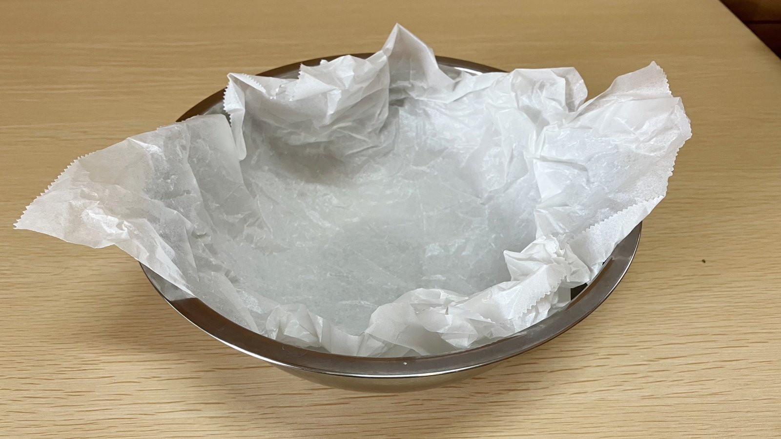 その裏ワザとは、ボウルにクッキングシートを敷くというシンプルなものです。
