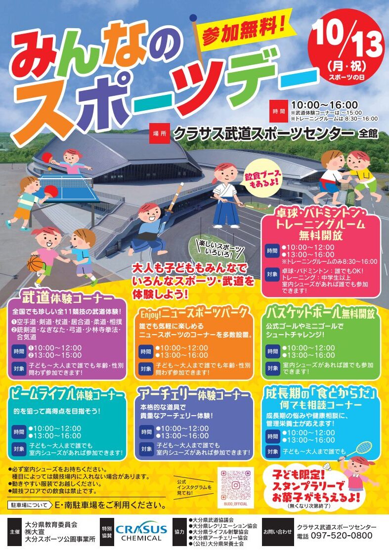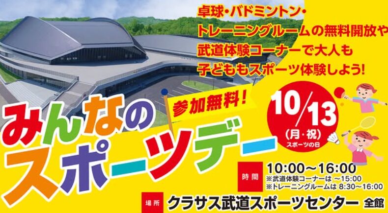 クラサス武道スポーツセンターで『みんなのスポーツデー』が開催されます。