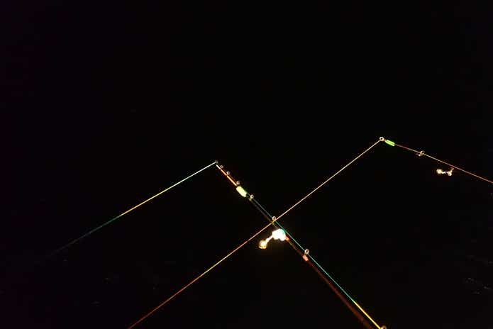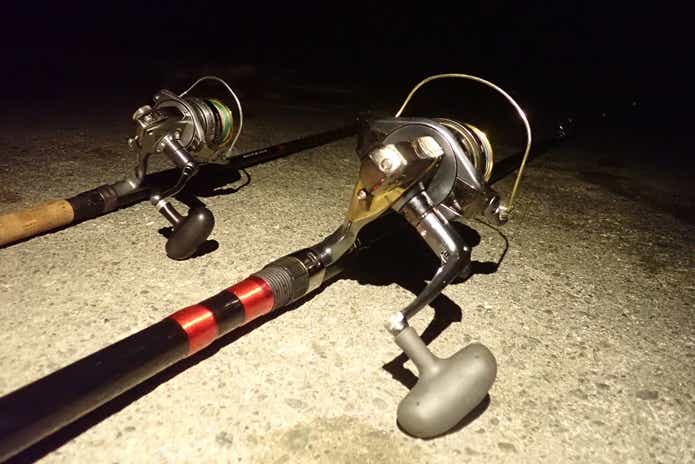 砂地まで少々遠投が必要なポイントでしたので、タマン竿とコイ用投げ竿で60〜80m投げ込みます。