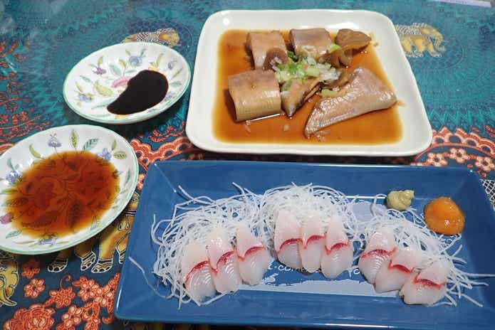 特にお刺身が美味しい。なんというか。ブリとイカのハイブリットという食感です。